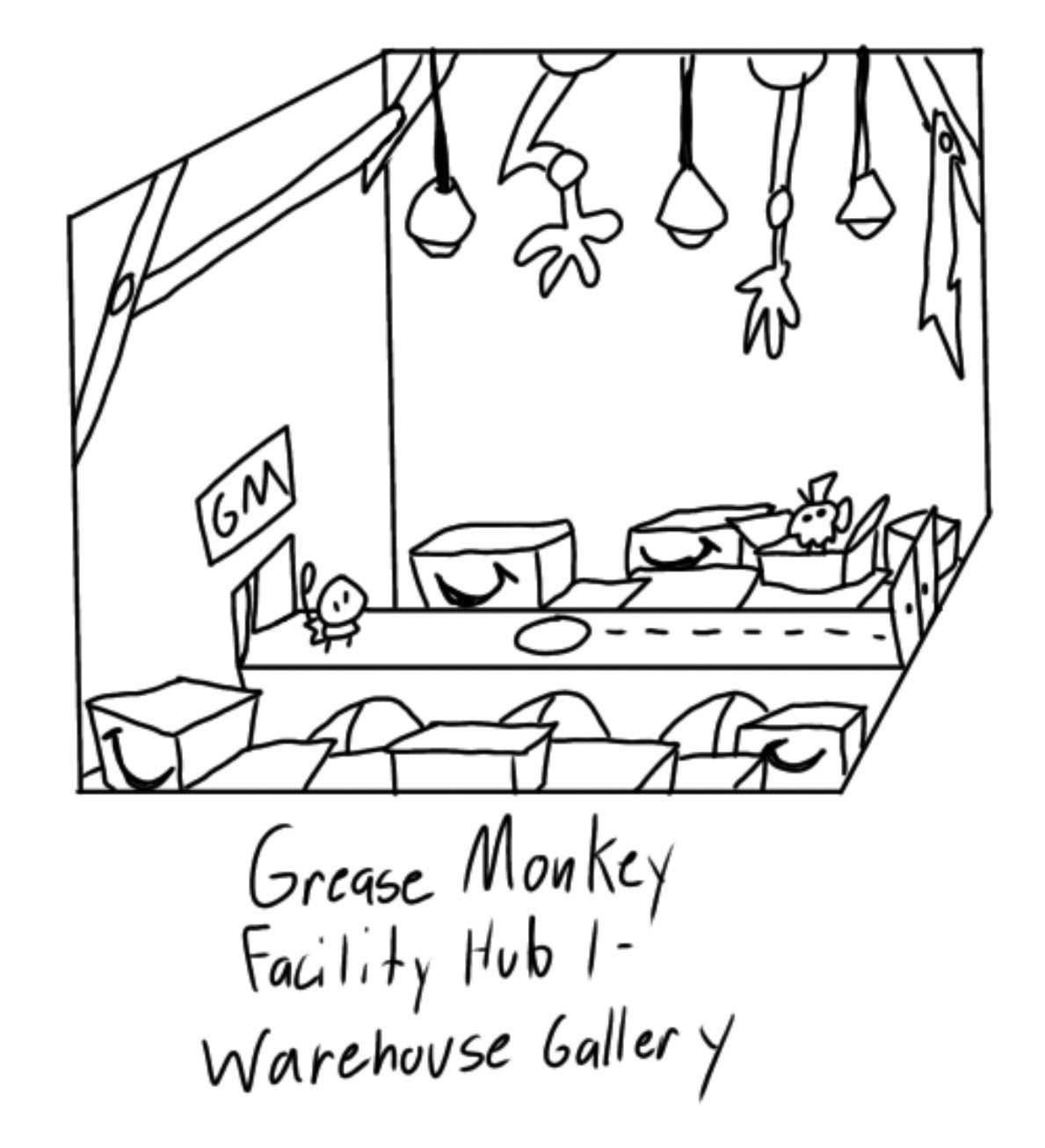 I also did a crap ton of Blinky concept art yesterday, here's one of them to show that I am indeed finally thinking outside of the Grease Monkey facility.